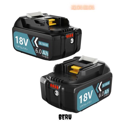 ??【 マキタ18vバッテリー 互換】型番: マキタ 18v 互換バッテリー 電圧:18V 容量:6000mAh 電池種類:リチウムイオン電池 商品の数量:2個セット 日本語の説明書付き