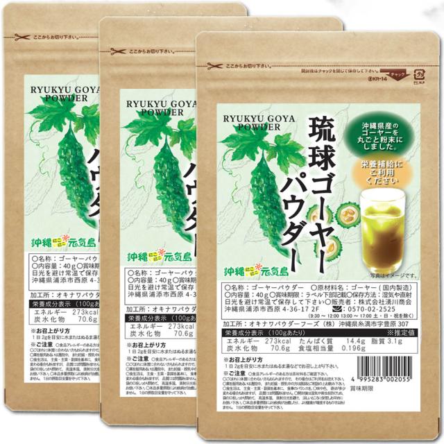 ゴーヤー パウダー 琉球ゴーヤーパウダー40g×3袋 ごーやー粉末 沖縄県産100% 国産 無添加 ノンカフェイン 青汁 ゴーヤ 苦瓜 沖縄にこにこ元気島
