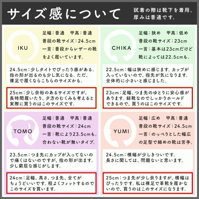 | サイズ目安 | 22.0cm 22.5cm 23.0cm 23.5cm 24.0cm 24.5cm 25.0cm |