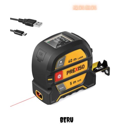 PREXISO メジャー レーザー距離計 デジタルメジャー コンベックス PSC認定取得 1台2役 重型 最大測定距離40m 巻尺5m 0.37kg USB充電式