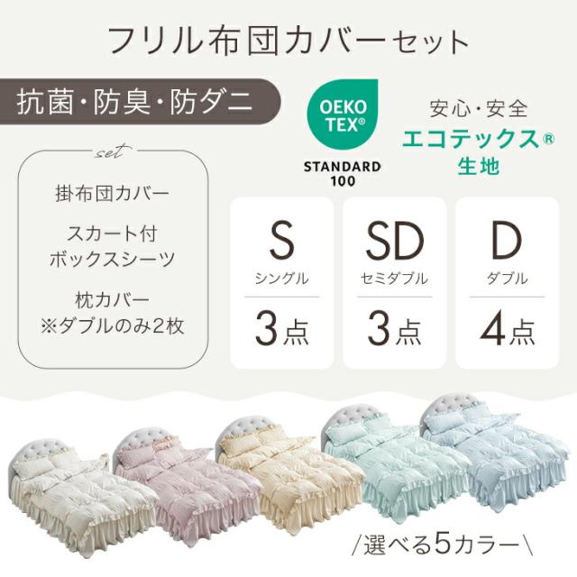 フリル 布団カバー セット 抗菌 防臭 防ダニ シングル 掛布団カバー 掛け布団カバー 掛けカバー ボックスシーツ シーツ ベッドスカート フリル付き ベッド カバー まくらカバー 洗える