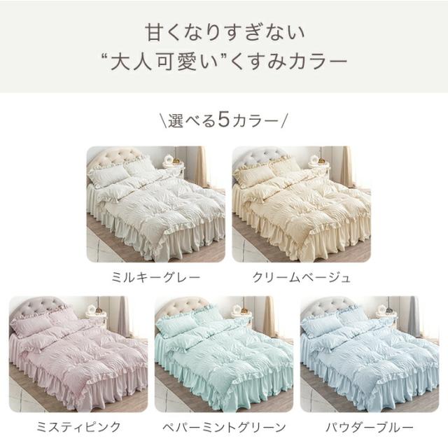 布団カバーセット 寝具カバー 布団カバー フリル付き ワンタッチシーツ シーツ 枕カバー 丸洗いOK グレー ベージュ ピンク グリーン ブルー おしゃれ 可愛い 姫系 無地 かわいい 韓国 風