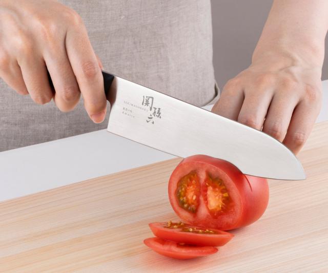 従来の三徳包丁の刃形状よりも、刃幅が約4mm細いので、小回りが利いて食材が取り扱いやすいです。