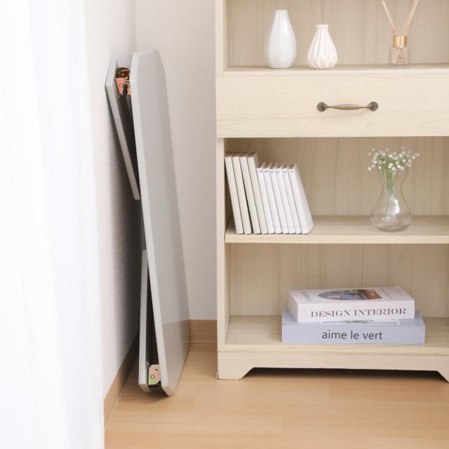 使用しない時はコンパクトに折りたたむことができます。折りたたんだ時の厚さは7cmなので壁の隙間に立掛けて収納することができます。