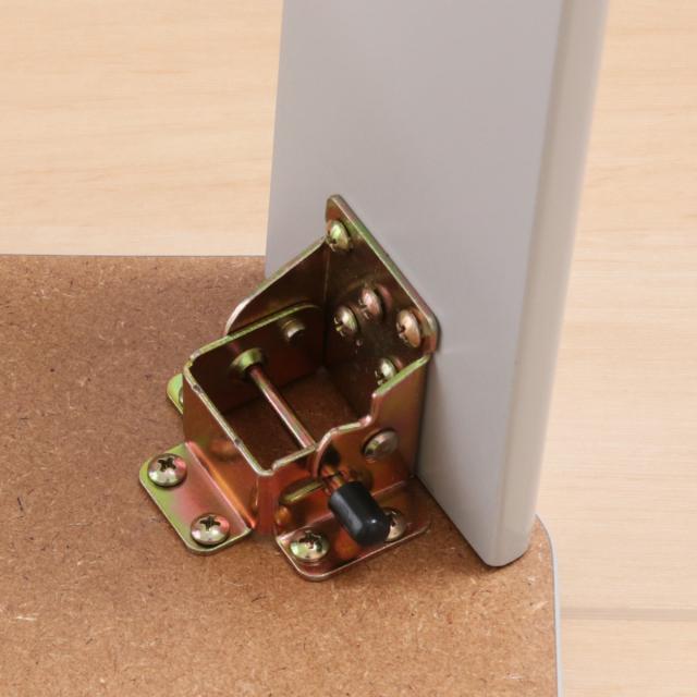 脚部はストッパーの解除で折りたためる仕様です。勝手に閉じて手を挟むなどのケガの心配がないので、小さなお子様も安心してご使用いただけます。