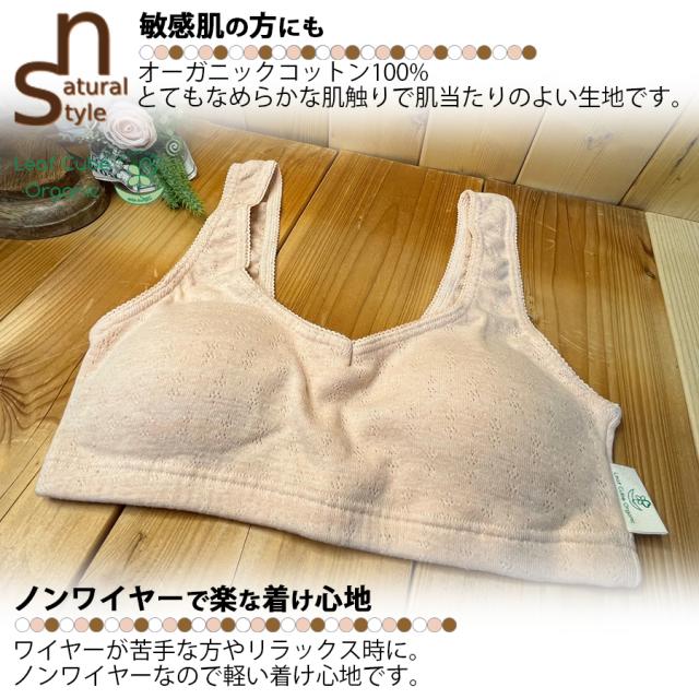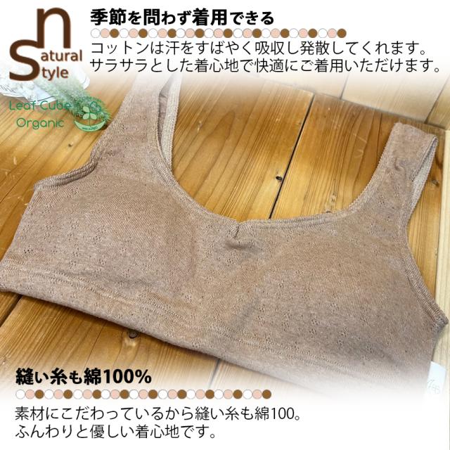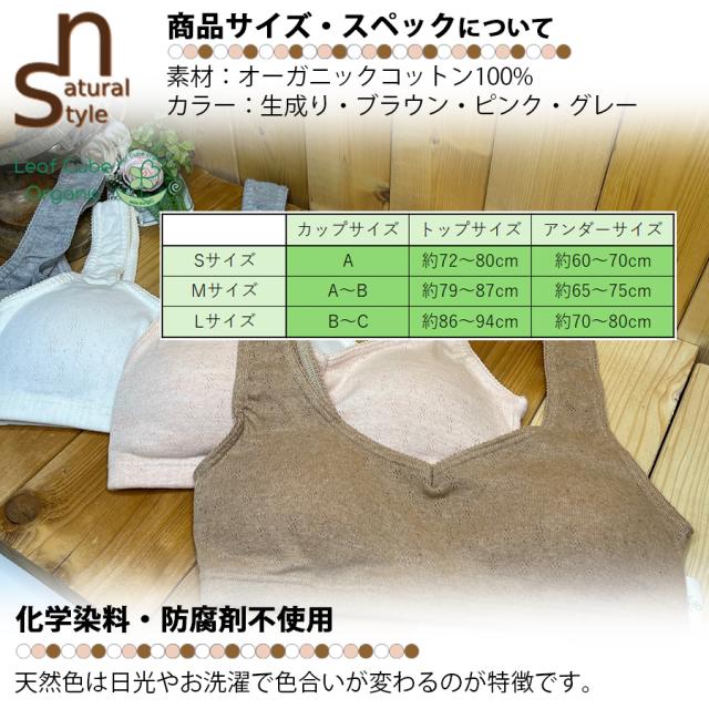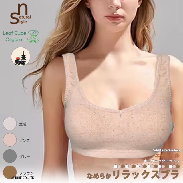 Leaf Cube ORGANIC エチュール なめらかリラックスブラ 日本製 綿100% 敏感肌 肌に優しい ノンワイヤー ブラ ナイトブラ 就寝 運動 ブラジャー インナー 下着 快適 ナチュラル やわらかい オーガニック コットン 自然素材 S M L リーフキューブオーガニック 区分N 105155