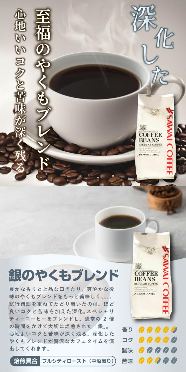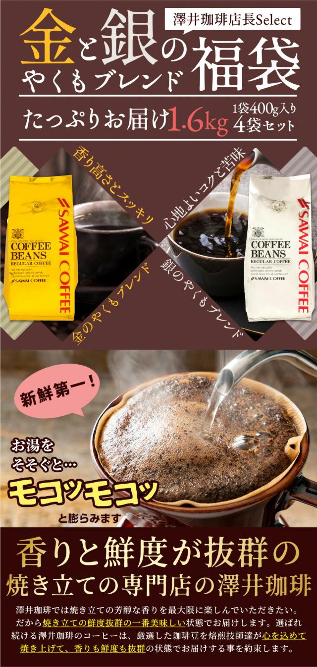 金 銀 やくもブレンド 400g×4袋 160杯分 焙煎したて レギュラー コーヒー豆 珈琲豆 コーヒー 福袋 大容量 1.6kg 中挽き/豆のまま コーヒー専門店 セット 澤井珈琲