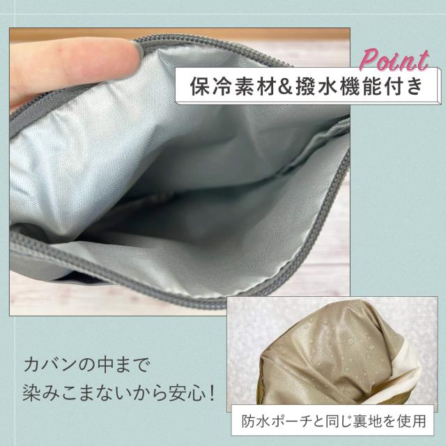 【保冷素材&撥水機能付き】カバンの中まで染み込まないから安心