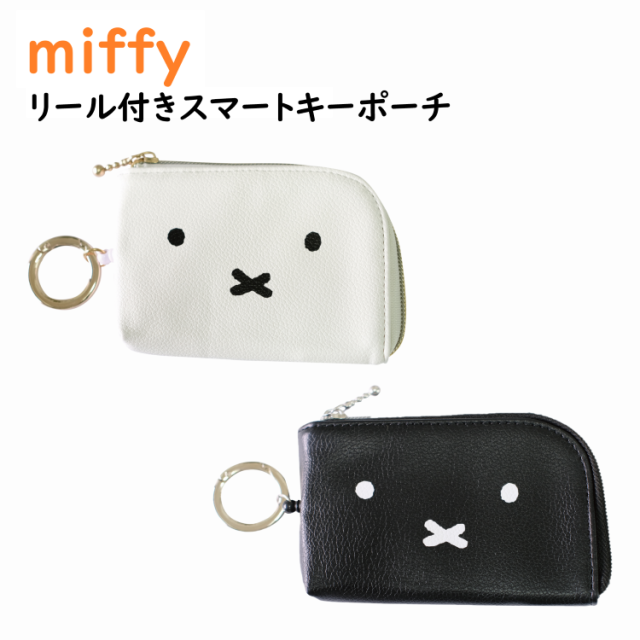 【 miffy ミッフィー 】mf リール付きスマートキーポーチ WH BK キーケース 免許証 定期 ケース ニコット ミッフィー 小物 かわいい おしゃれ 雑貨 LIC-MF0166 LIC-MF0167