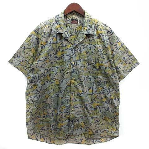 【中古】サンタフェ santafe パームツリー シャツ 半袖 ヤシの木 総柄 コットン グリーン 緑 38 メンズ