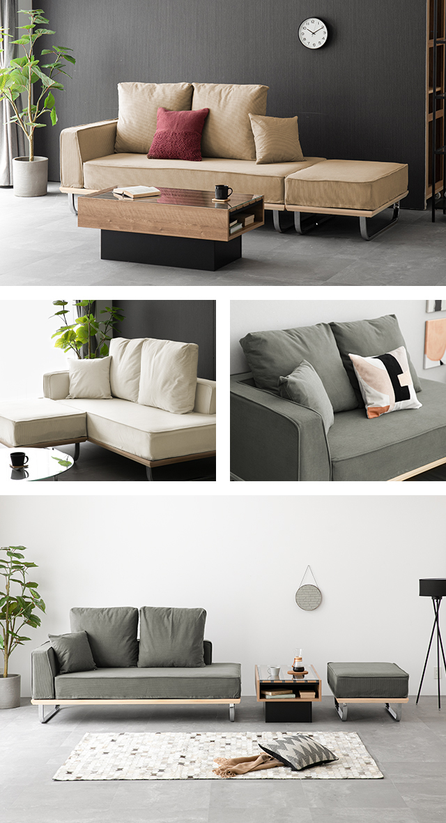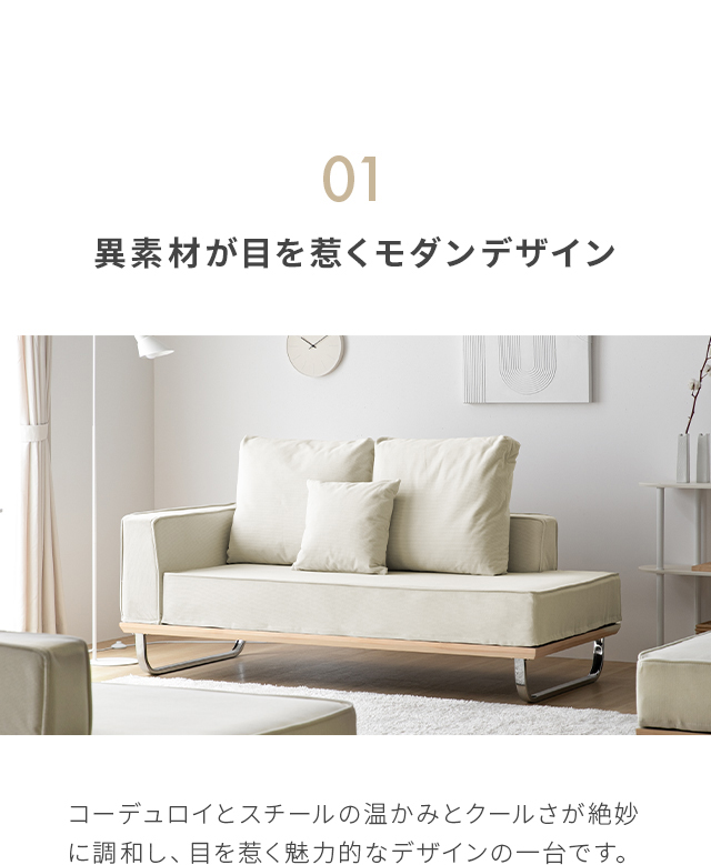 ソファー 2人掛け 3人掛け カウチソファ コーデュロイ ソファ 三人掛け カバー おしゃれ ファブリック アームレス 天然木 スチール 脚 ローバック モダン 3P ファブリック フルカバー カバーリング ポケットコイル 布 新生活