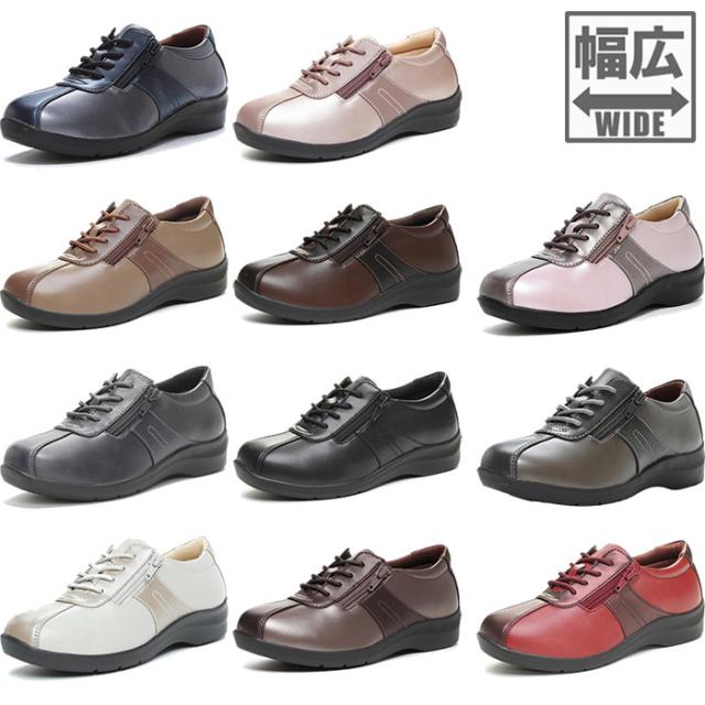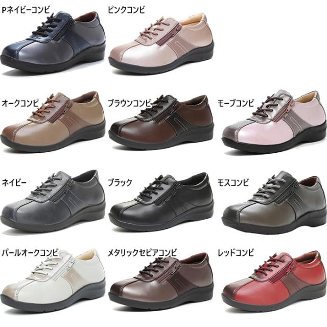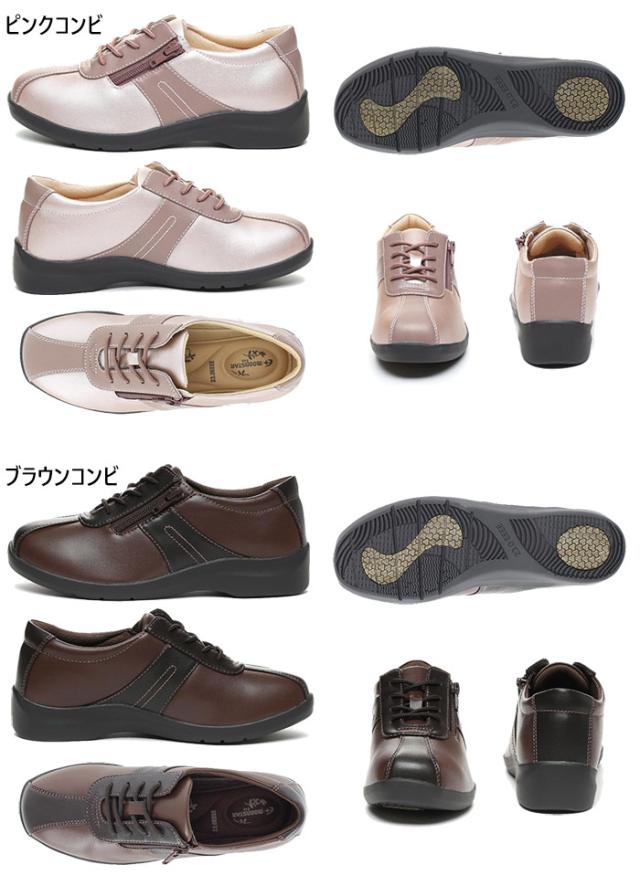 4E幅 幅広 ワイド ムーンスター レディース イブ EVE 195 ファスナー付きスニーカー 紐靴 コンフォートシューズ ローカット カジュアル ウォーキング ブラック 黒 ネイビー 送料無料 MoonStar