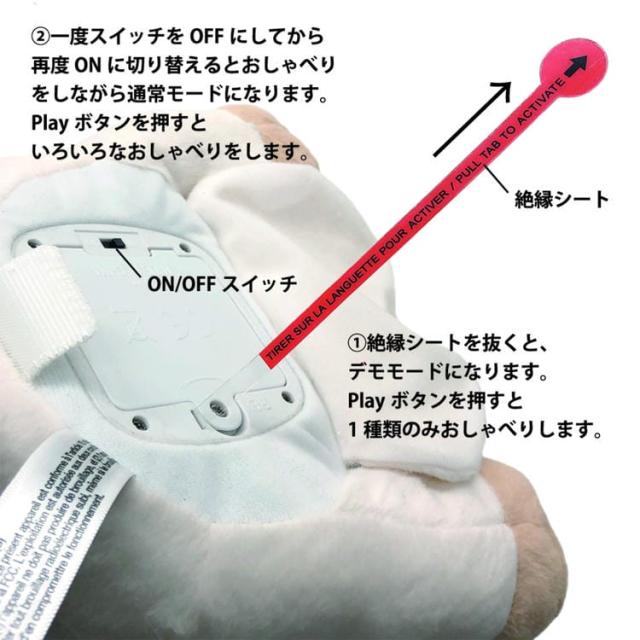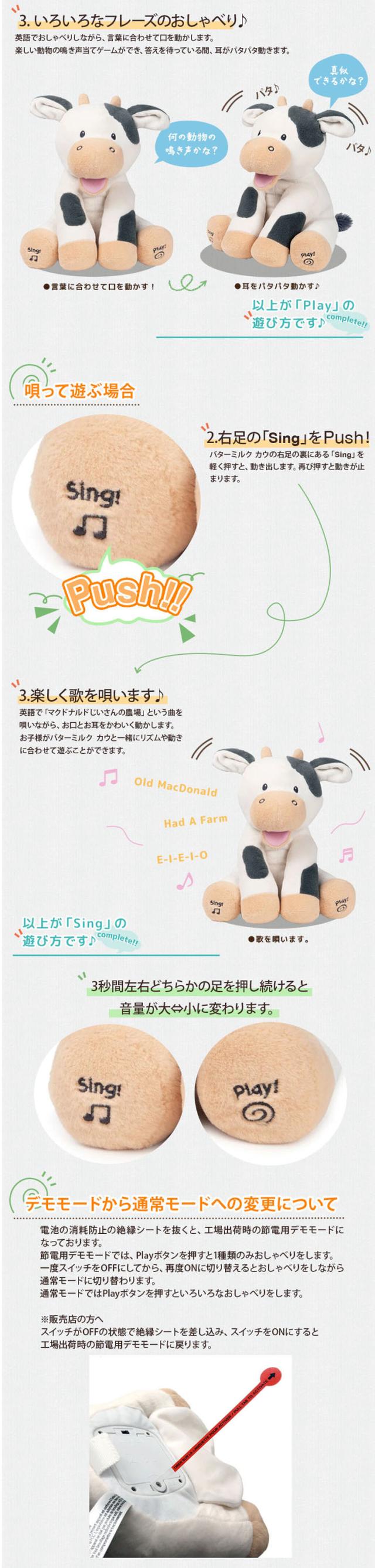 バターミルクは、プレイモードでいろいろなフレーズのおしゃべりがあり、小さなお子様も楽しく遊ぶことができます。