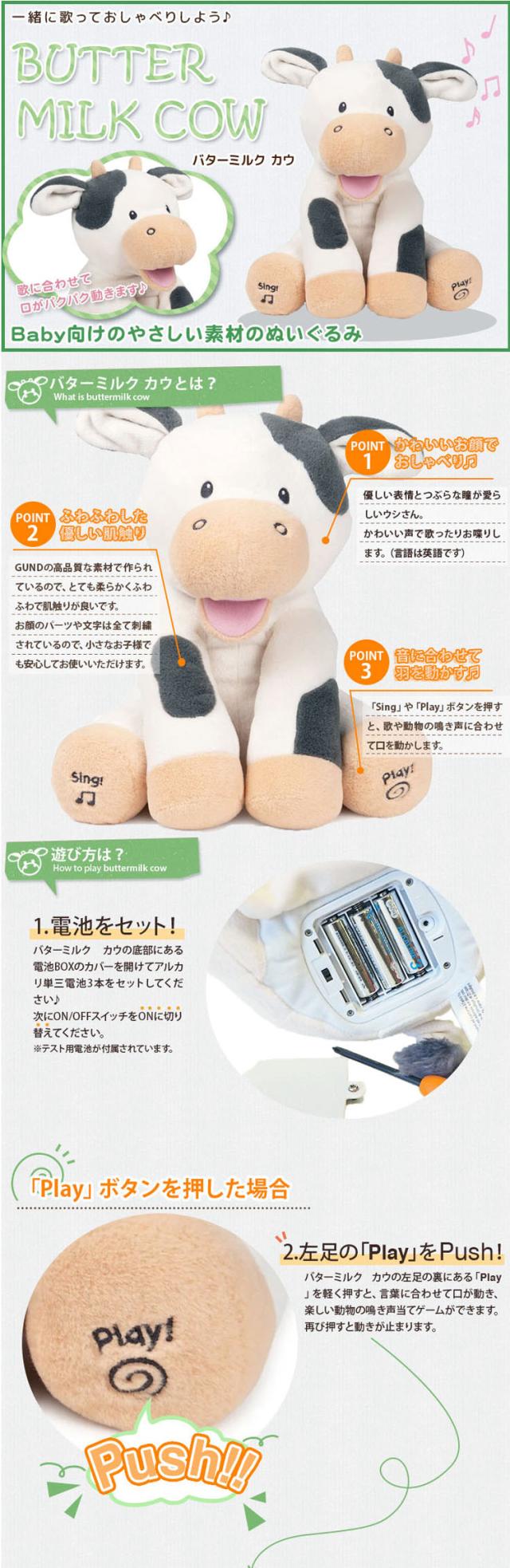 GUND ガンド バターミルク カウ ぬいぐるみ うし 牛 知育玩具 ウシのぬいぐるみ どうぶつ 動物 動く おしゃべり 歌う おもちゃ 人形 アニマル 人気 ブランド 6066847