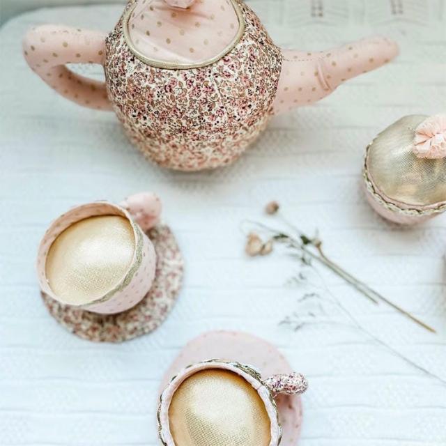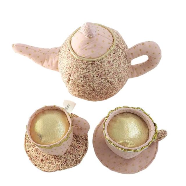 フランスからインスピレーションを受けてデザインされた高級感が漂う花柄生地のティーセットは、ティータイムを楽しく優雅に演出してくれます。カップとソーサーにはマジックテープがついているので、取り外して遊んでいただくことが可能です。ティーポットとティーカップ2個の3点セットになっており、お部屋に飾るインテリアとしてもおすすめです。