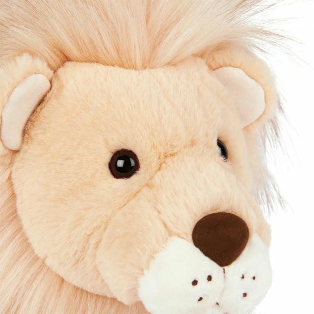 ライオンのレジスは、ツートンカラーのコントラストが美しいフワフワのたてがみがポイントです。丸く温かみのあるブラウンカラーの瞳とスエード素材で作られた鼻、刺繍されたそばかすと口のディテールが強さの中にも可愛らしく親しみやすい印象を与えてくれます。長くしっかりとしたシッポの部分も魅力的なぬいぐるみになっています。