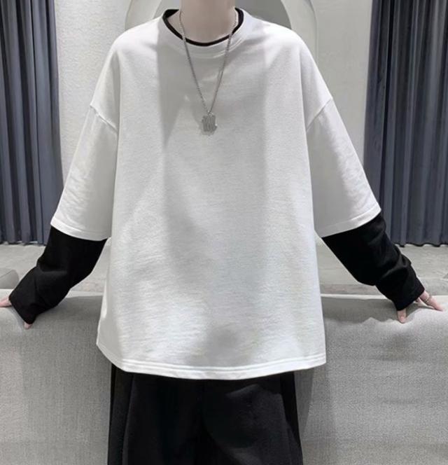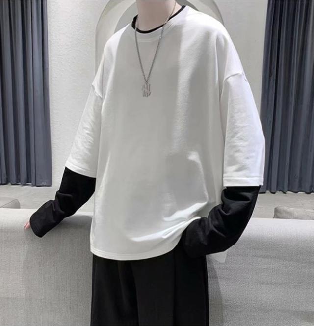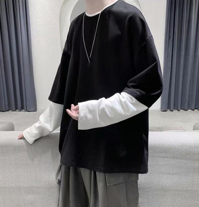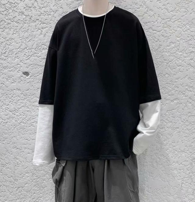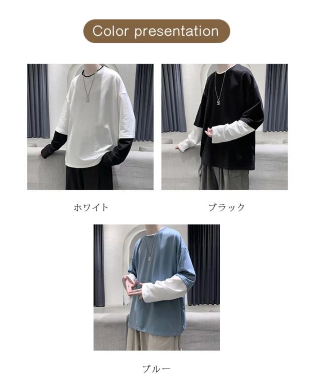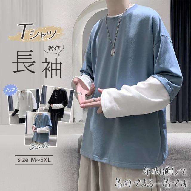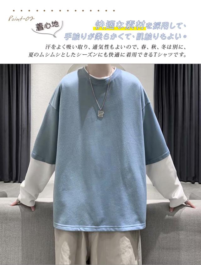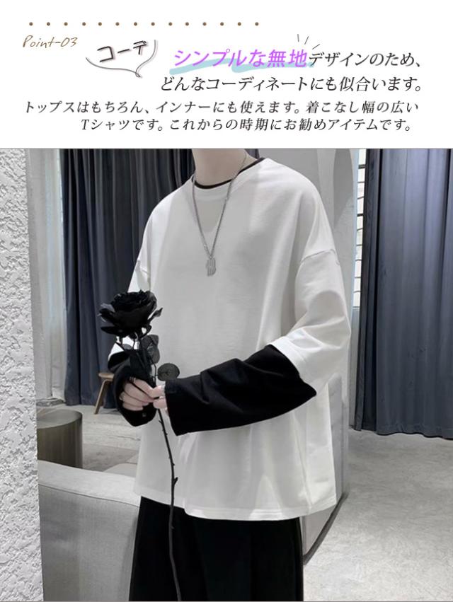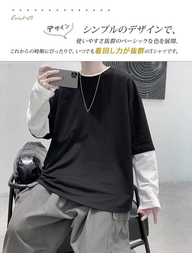 長袖Tシャツ メンズ tシャツ長袖 大きいサイズ 重ね着風 レイヤード 無地 ゆったり 柔らか ビッグシルエット カジュアル コットン 肌着 トップス