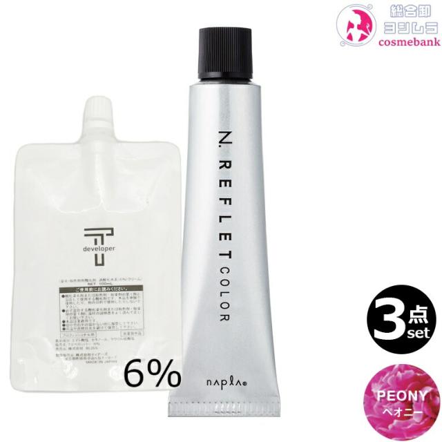 【3セット・全国送料無料・メール便】ナプラ N.エヌドット ルフレカラー PE ペオニー 80g + クリームデベロッパー 2剤 6% 100mL セット |ファッション サロン技術者専用 トーン選択