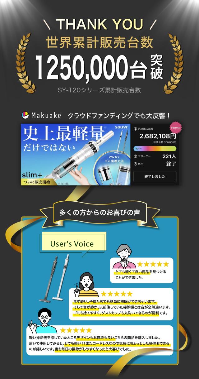 スリムなのにパワフルな吸引力! 安心メーカー保証付き