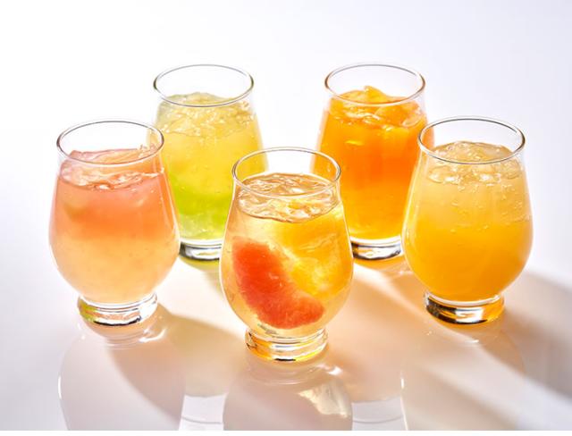 【マンゴー&パッション】マンゴーシラップ漬(タイ製造)、砂糖、水あめ混合異性化液糖、マンゴーピューレ、濃縮パッションフルーツ果汁、濃縮オレンジ果汁、洋酒/pH調整剤、ゲル化剤(増粘多糖類)、安定剤(加工デンプン)、酸化防止剤(V.C)、香料、着色料(カロテノイド)、(一部にオレンジ・大豆を含む)【ピーチ&グレープフルーツ】グレープフルーツ果汁(グレープフルーツ(メキシコ産、イスラエル産))、砂糖、白桃シラップ漬、ももピューレ、砂糖混合ぶどう糖果糖液糖、濃縮もも果汁、水飴、洋酒/ゲル化剤(増粘多糖類)、pH調整剤、酸化防止剤(V.C)、香料、酸味料、着色料(カロテノイド)、(一部にももを含む)【アップル&オレンジ】りんごシラップ漬(国内製造)、砂糖、果糖ぶどう糖液糖、りんご果汁、濃縮りんご果汁、濃縮混合果汁(温州みかん、オレンジ)、濃縮オレンジ果汁、洋酒/ゲル化剤(増粘多糖類)、酸化防止剤(V.C)、pH調整剤、香料、酸味料、着色料(カロテノイド)、(一部にオレンジ・りんごを含む)【アップル&マスカット】りんごシラップ漬(国内製造)、砂糖、還元水飴、水あめ、混合異性化液糖、濃縮りんご果汁、りんごピューレ、濃縮マスカット果汁/ゲル化剤(増粘多糖類)、pH調整剤、安定剤(ペクチン)、酸化防止剤(V.C)、酸味料、香料、着色料(クチナシ、カロテノイド)、(一部にりんごを含む)【シトラスミックス】グレープフルーツシラップ漬(トルコ製造)、砂糖、甘夏みかんシラップ漬、洋酒、濃縮レモン果汁/ゲル化剤(増粘多糖類)、pH調整剤、酸化防止剤(V.C)、香料