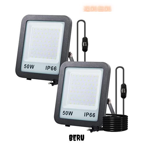LED投光器 超薄型 省エネ50W 作業灯 看板灯 500W相当 昼光色 6500LM IP66防水防塵 防水通気フィルタ付 駐車場用 倉庫照明 防犯灯 船舶 屋