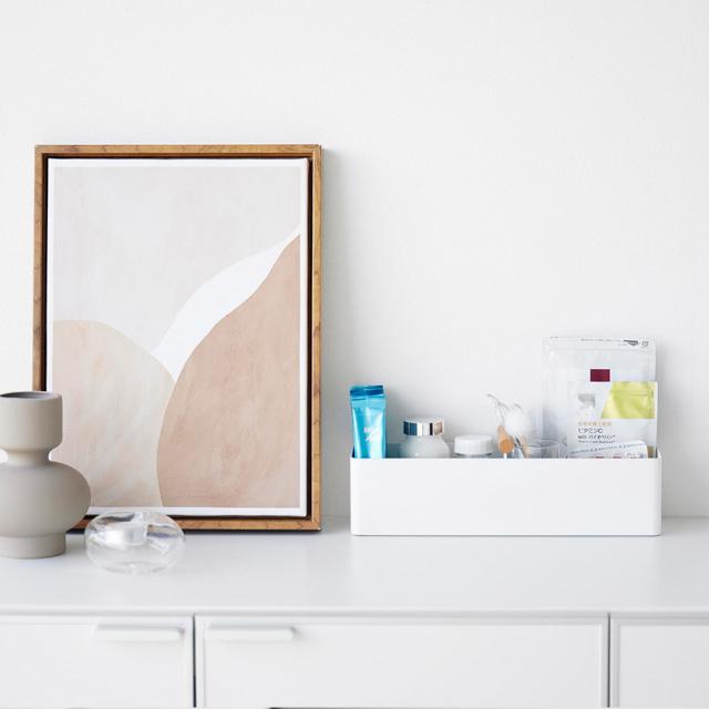 2個使用すれば、基礎化粧品とメイクアップ用品を分けて収納できるのでドレッサー前もすっきり。