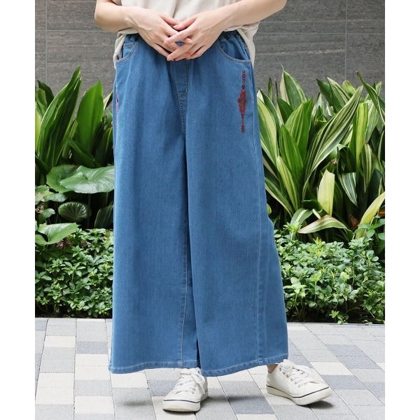 らくちんなのに美シルエット!ポケット刺繍のデニムバギーパンツ