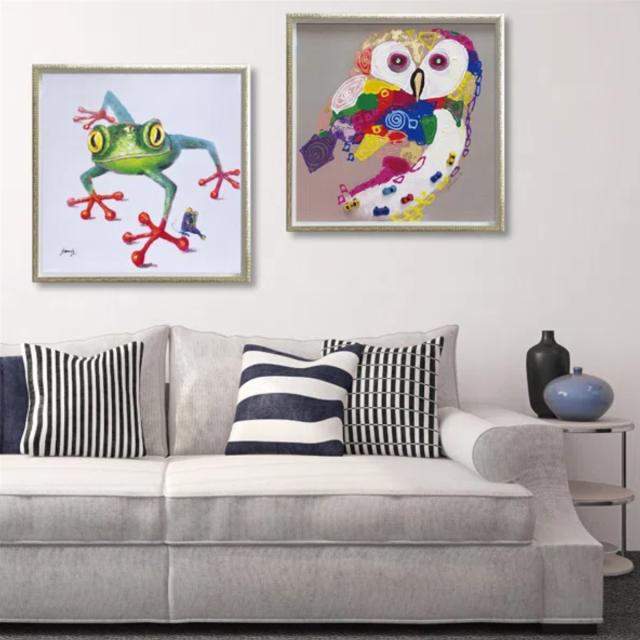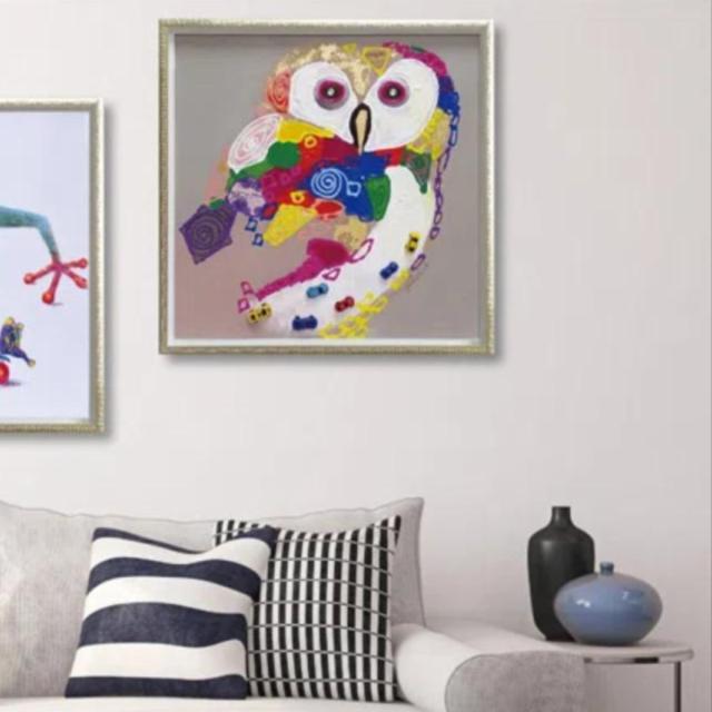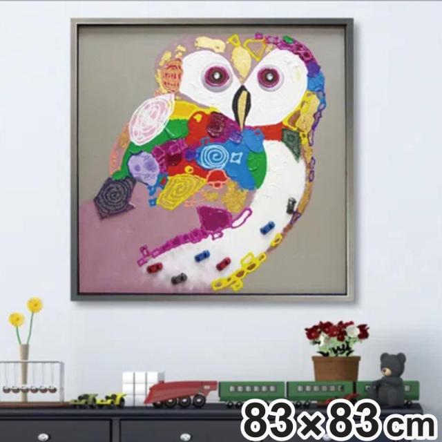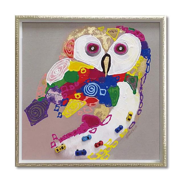 アートパネル オイルペイントアート 『カラフル オウル』 63×63cm ( 絵画 絵 アート インテリア 額 額入り 壁掛け 油絵 フクロウ カラフル ポスター アートフレーム アートポスター ウォールアート パネル 額付き 正方形 )