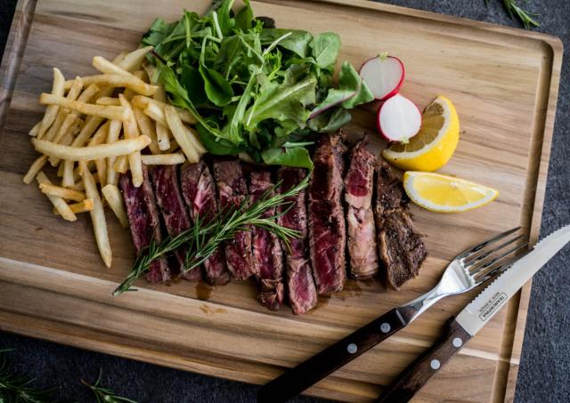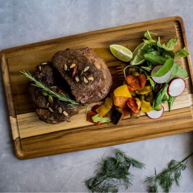 片面の縁に溝が付いているため、肉汁やソース、食材から出る水分などをしっかりとキャッチします。両面使えるので、溝が入っている面は肉専用、フラット面は野菜専用、と使い分けることで衛生的にお使いいただけます。