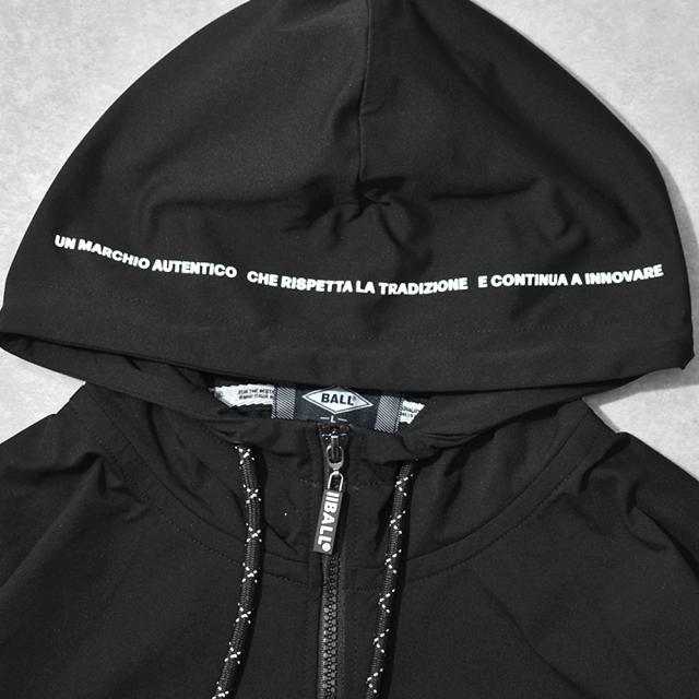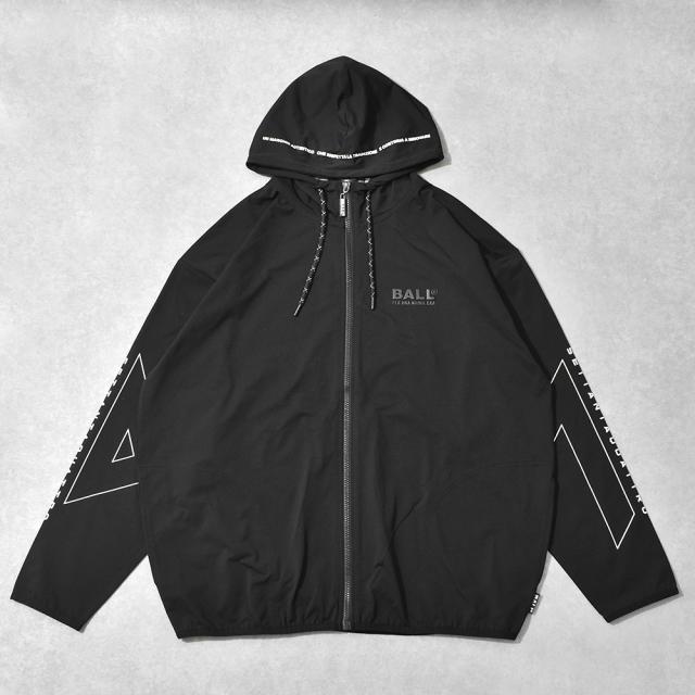 パーカー メンズ 立体 ロゴ プリント ストレッチ 伸縮 ビッグシルエット ユニセックス フルジップ ジップアップ 春 秋 スポーツ ジム カジュアル BALL 64208