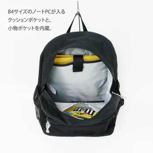 B4サイズのノートPCが入る大きなクッションポケットを内蔵した通学に使いやすいバッグです。