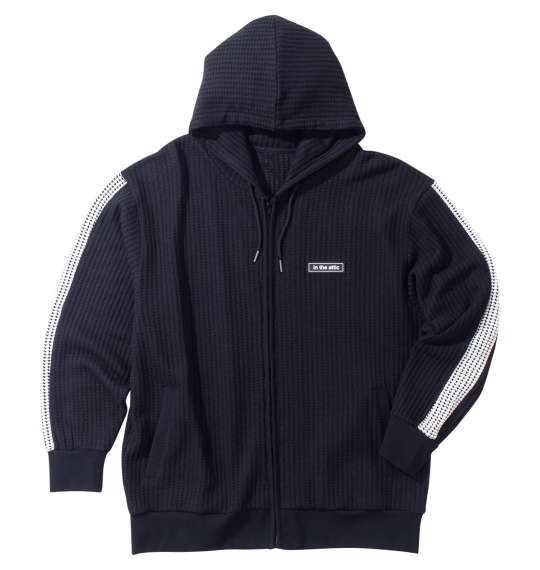 大きいサイズ メンズ in the attic ビッグワッフル切替 フルジップ パーカー ブラック 1258-4372-2 3L 4L 5L 6L