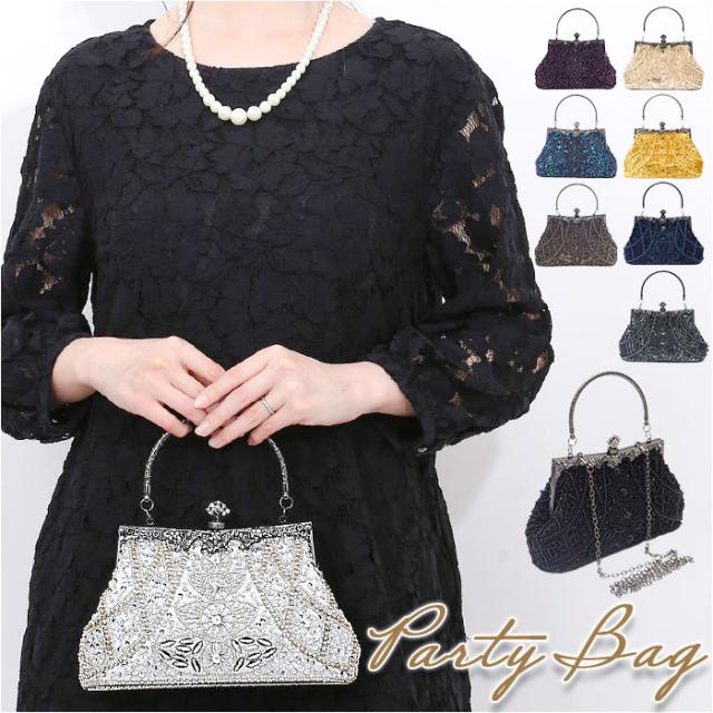 パーティバッグ キラキラ 通販 ビーズ刺繍バッグ クラッチバッグ がま口 フォーマルバッグ 2WAY カジュアルバック゛ バッグ カバン おしゃれ 結婚式 二次会 謝恩会 お呼ばれ パール