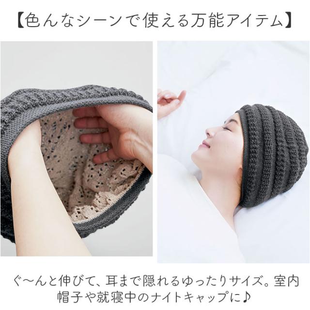 帽子 レディース ニット帽 通販 ニット帽子 室内帽子 ニット ぼうし 秋冬 あたたか帽子 リバーシブル 2way 内側シルク 二重構造 蒸れにくい 髪にやさしい ゆったり 手洗いOK お出かけ 旅行 ケア帽子 ナイトキャップ コジット 日本製 おしゃれ