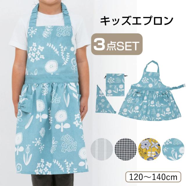《 LH12957 キッズエプロンセット 子ども用 バンダナ 巾着 袋 収納袋 ポケット 子供 こども 幼児 園児 小学生 低学年 高学年 中学生 小学生サイズ お料理教室 家庭科 給食 お手伝い お絵かき 料理教室 お菓子作り 男児 女児 可愛い カワイイ お洒落 オシャレ かっこい カッコイイ プレゼント ギフト 贈り物 御祝い お祝い 入園祝い 入学祝い 進級祝い 誕生日 入園準備 入学準備 キッチン用品 120〜140cm対応 120cm 130cm 140cm ストライプ ギンガムチェック ボタニカル 花 ぐれー 灰色 ぶらっく 黒 くろ いえろー 黄色 きいろ ぶるー 青 あお 》