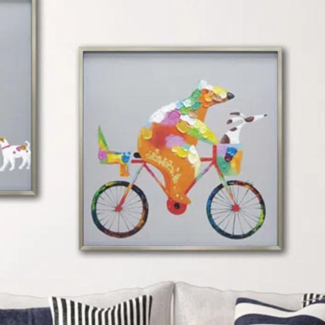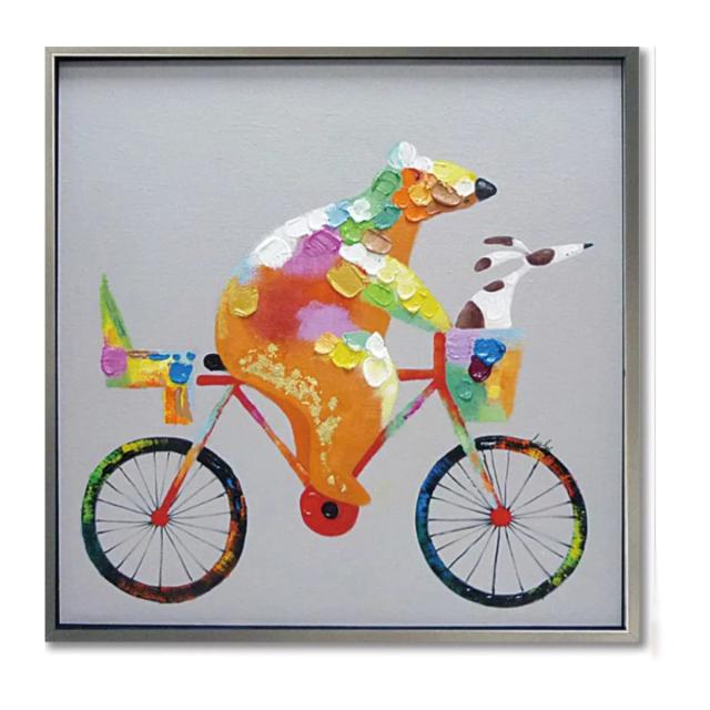 アートパネル オイルペイントアート 『タンデム』 83×83cm ( 絵画 絵 アート インテリア 額 額入り 壁掛け クマ 自転車 カラフル アニマル 動物 ポスター アートフレーム アートポスター ウォールアート パネル 額付き かわいい )
