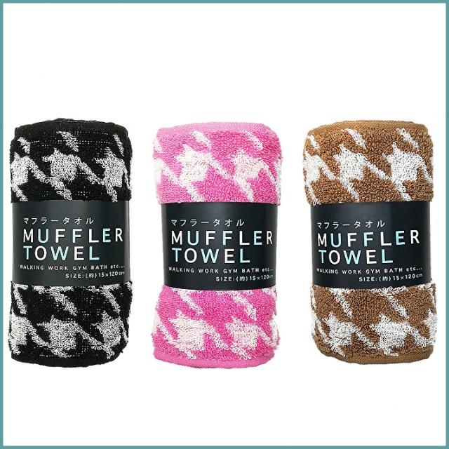 【送料無料】八木春 マフラータオル 幅15cm×長さ120cm フェイスタオル ハンカチタオル 千鳥 ブラック・ピンク・ブラウン