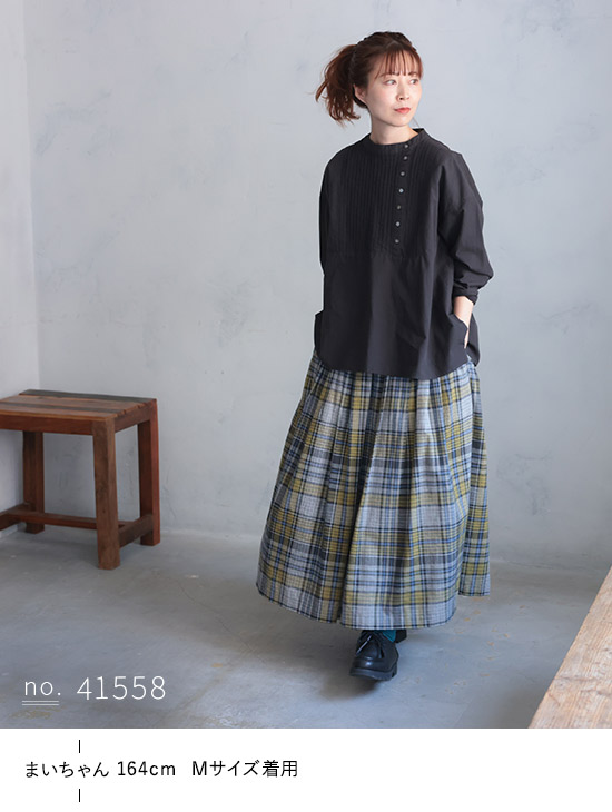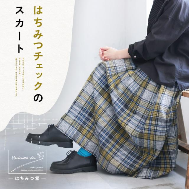 はちみつ堂 はちみつチェックのスカート レディース ロング フレア Aライン 麻混 リネン混 ボトムス