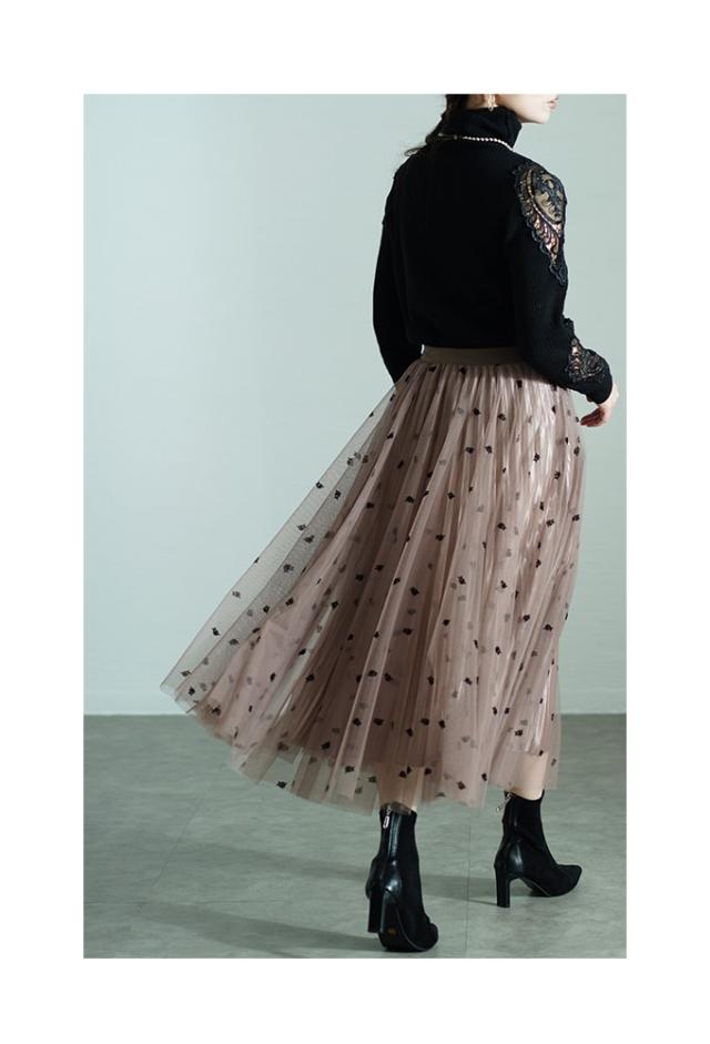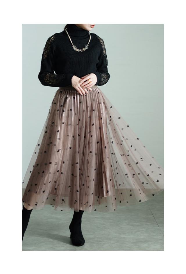商品名: 贅沢を奏でるような花柄ドットチュールスカート