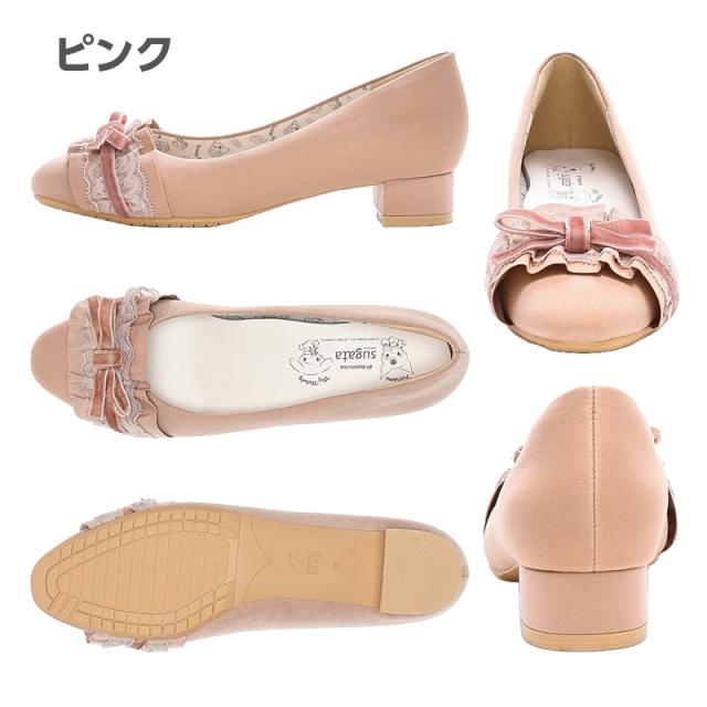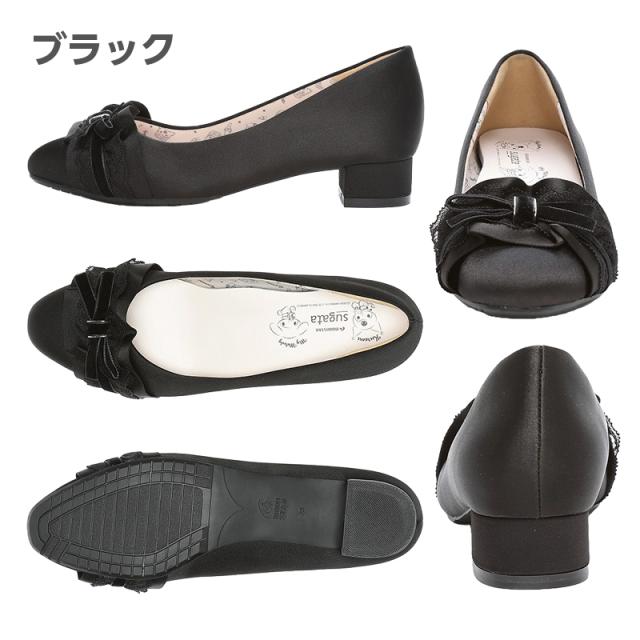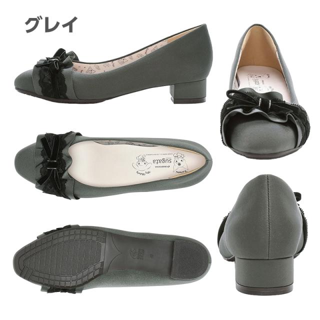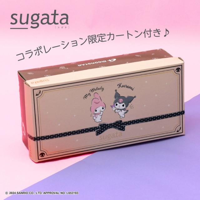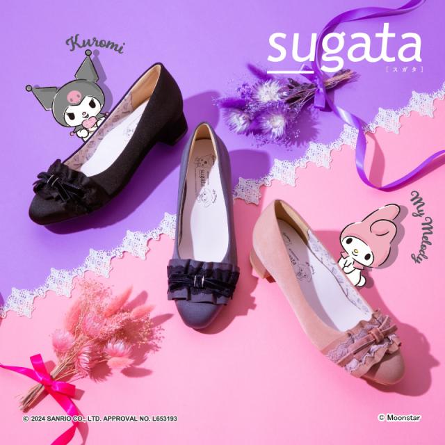 【商品特徴】 「ラクに歩けて、うつくしい」がコンセプトのパンプス「sugata」。屈曲性の良いボロネーゼ製法を採用しています。インソールは足裏形状に合わせたアナトミー設計で荷重を足裏全体に分散し、衝撃吸収・荷重分散性能に優れた素材「マザータッチ」を使用しているので、ふんわり柔らかな履き心地です。アウトソールは中央部にくぼみを持つ独自開発の形状で、安定性に優れています。お医者様からも姿勢のよい歩きをサポートする機能性が認められた商品です。ヒールは低めの3cmで、トレンド感を備えたソフトスクエアトゥにより、つま先の圧迫がより少ないのもうれしいところ。【クロミとマイメロディの限定コラボデザインが初登場】クロミとマイメロディには欠かせないリボンやレース、フリルといった甘くロマンティックなモチーフをふんだんにちりばめました。マイメロディをイメージさせるやさしいベージュ系ピンク、クロミをイメージさせるブラック、グレーで、大人のための・大人が履きたいデザインに仕上げています。ほどよい3cmヒールで歩きやすさも叶えます。内側とインソールにもクロミとマイメロディのプリントを施しました。クロミとマイメロディのオリジナルボックス付き。