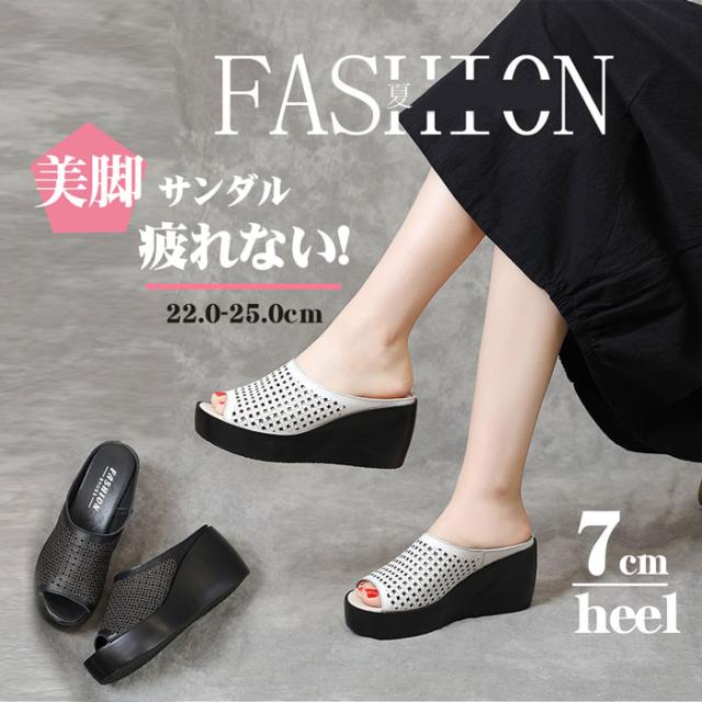 ウェッジソールサンダル 厚底ヒール7cm 美脚サンダル 脚長 歩きやすい 厚底サンダル 立ち仕事 お出かけ お呼ばれ イベント ウェッジサンダル キャバサンダル