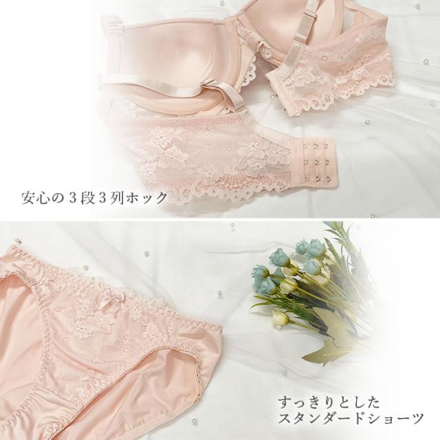 ブラジャー ブラショーツセット 大きいサイズ 響かない 脇高 美胸 下着 レディース (nt-1)
