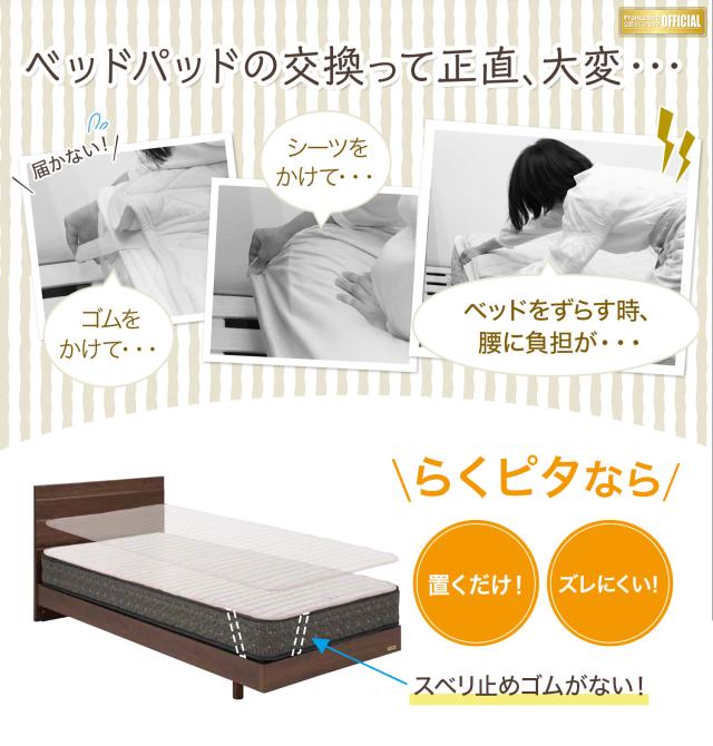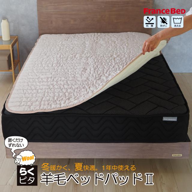 フランスベッド らくピタ 羊毛ベッドパッド 置くだけ ベッドパッド 敷きパッド セミダブル羊毛 ウール