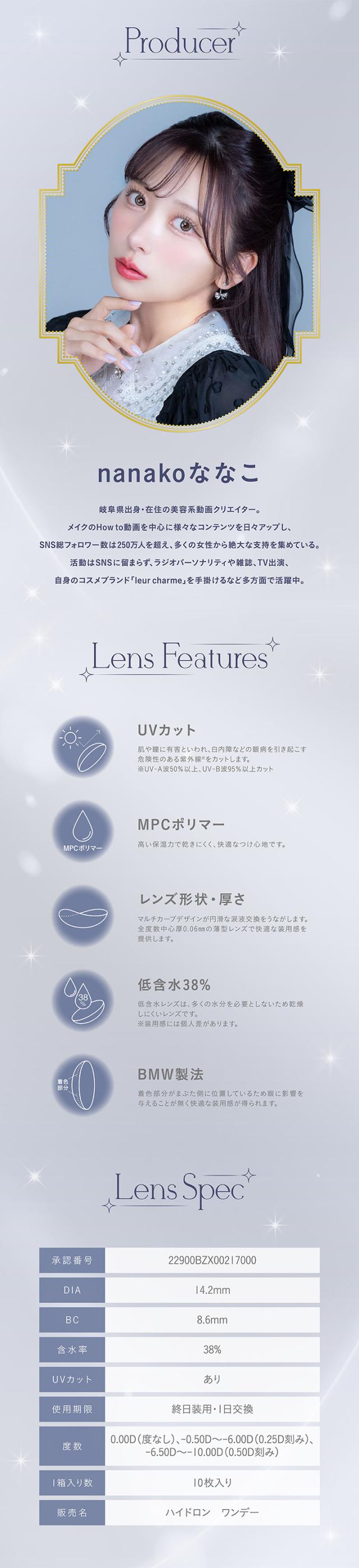 カラコン ミミシャルム ワンデー 1箱 10枚入 mimi charme 1day 度あり 度なし 14.2mm nanako ななこ 1日使い捨て UVカット 低含水 カラー コンタクト レンズ