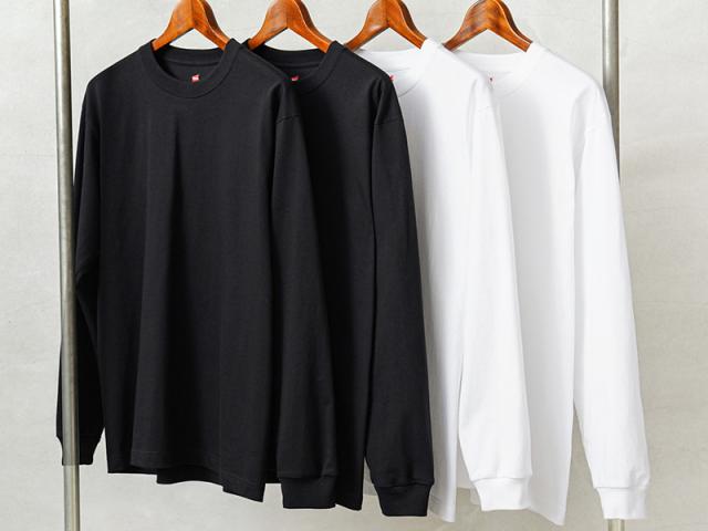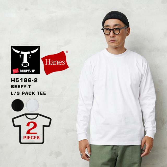 Hanes ヘインズ H5186-2 BEEFY ビーフィー ロングスリーブ パック Tシャツ クルーネック 2枚組【Sx】【T】|長袖 ロンT ヘビーウェイト メンズ アメカジ カジュアル 丸胴 無地 パックT 丈夫 肉厚 綿 コットン 定番 ファッション