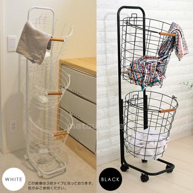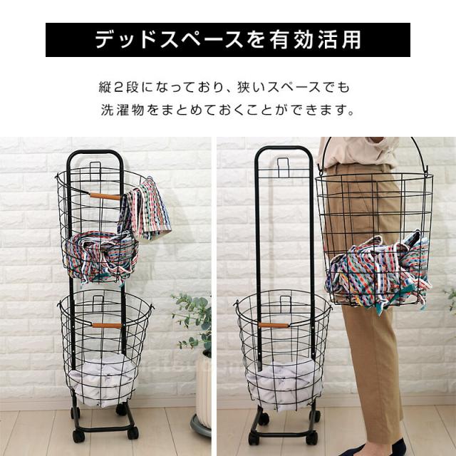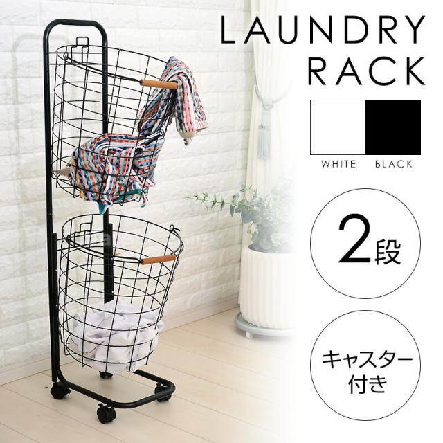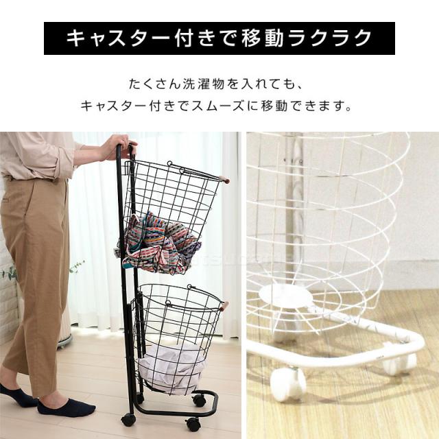 丸形ランドリーラック 2段 TAN-217-2 ランドリーバスケット 洗濯かご ラウンド ランドリー収納 キャスター付き ワイヤーバスケット ランドリーワゴン かご付き ランドリーラック ランドリーボックス 洗濯物入れ 収納グッズ 洗濯物ラック