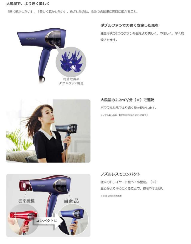 ダブルファンドライヤー MONSTER ドライヤー KOIZUMI モンスター ドライヤー 使い方 モンスター級 大風量ドライヤー 速乾性 美髪 早く乾く マイナスイオンドライヤー 温冷 ヘアケア 速乾ドライヤー おすすめ 人気 MONSTER ダブルファンドライヤー 効果 比較 ランキング 女性 男性 誕生日 母の日 父の日 敬老の日 クリスマス ギフト プレゼント 贈り物 コイズミ ダブルファンドライヤー モンスター MONSTER KHD-W810(H) グレー KHD-W810(V) パープル MONSTER コイズミ ドライヤー 評判 KHD-W810 通販 google グーグル yahoo ヤフー LINEショッピング 楽天市場