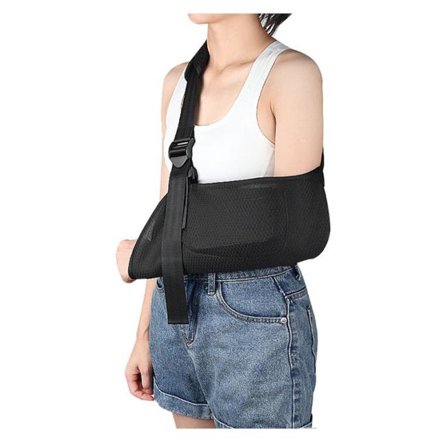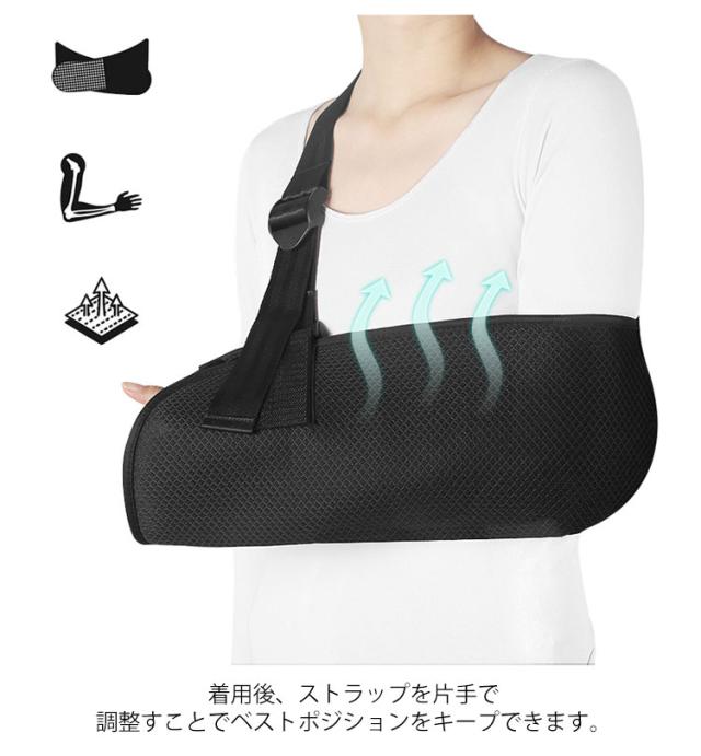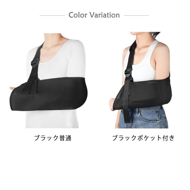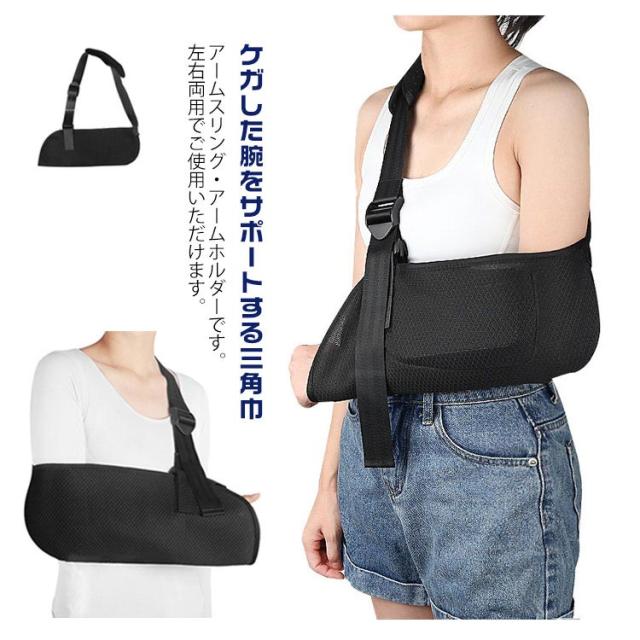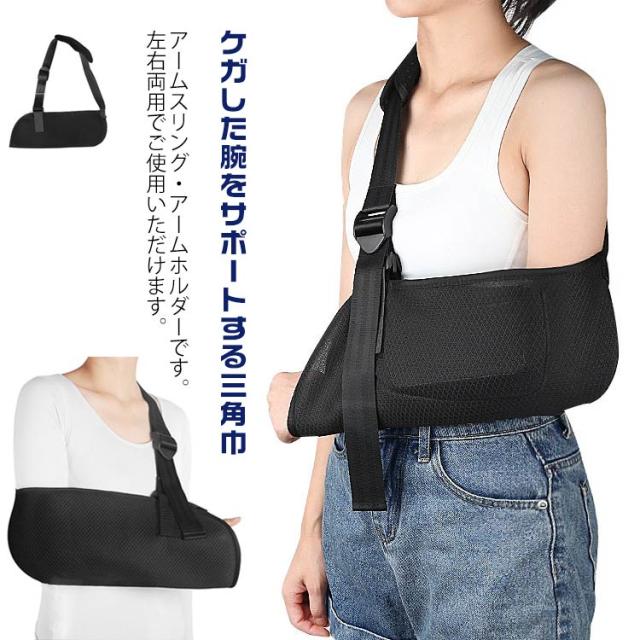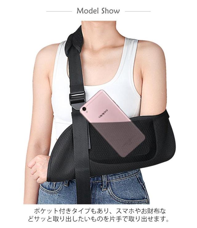 スマホポケット付き 三角巾 アームスリング 左右対応 腕のケガに 女性 アームホルダー 骨折 腕つり 腕 サポーター 黒 大人 こども 腕吊り 医療 メッシュ 男性 腕吊り 脱臼 保護 介護用品