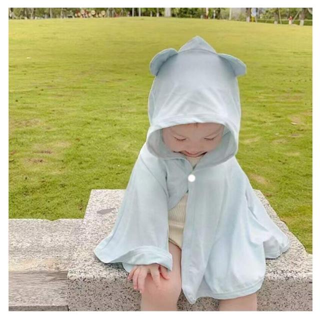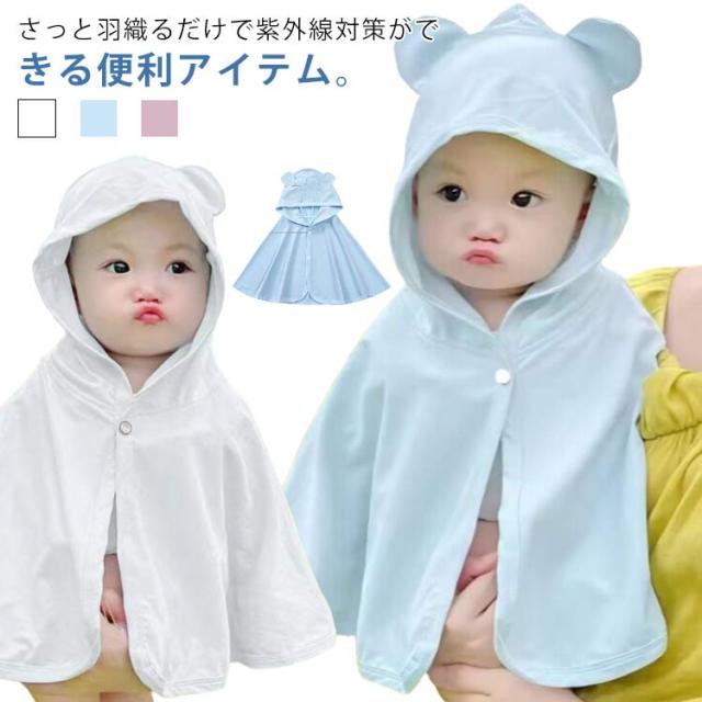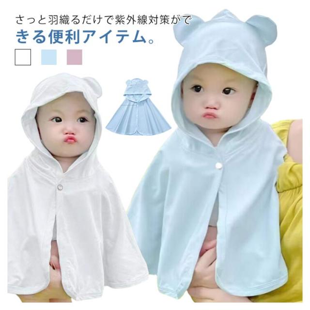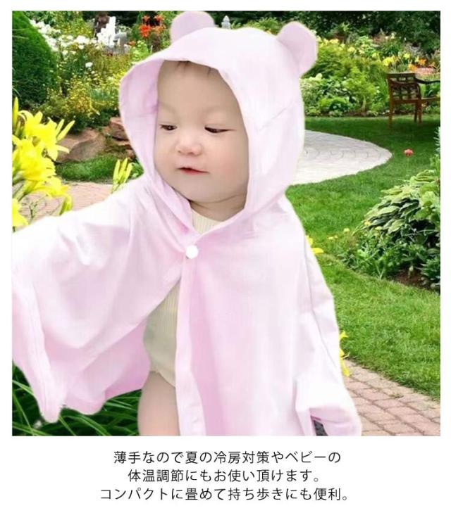 ベビー ラッシュガード アウター 子供 冷房対策 キッズ ラッシュガード 薄手 接触冷感 0-3歳 ベビーマント 日焼け止め ベビーケーブ 子供 紫外線カット パーカー ひんやり ポンチョ パーカー フード付き ベビー服 通気性 新生児 男の子 女の子 出産祝い 耳付き