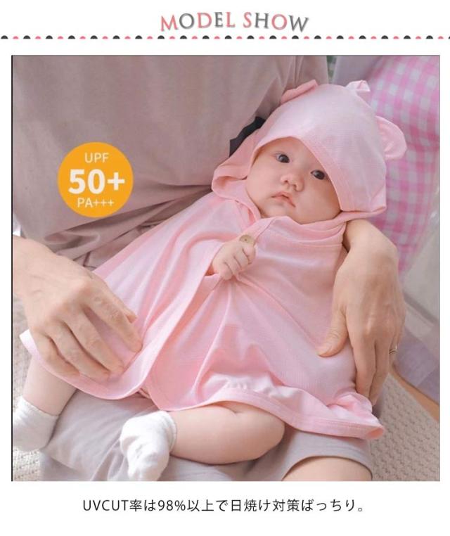 | さっと羽織るだけで紫外線対策ができる便利アイテム。 UVcut率は98%以上で日焼け対策ばっちり。 薄手なので夏の冷房対策やベビーの体温調節にもお使い頂けます。コンパクトに畳めて持ち歩きにも便利。 新生児は袖を通さずおくるみとして、マントとして活躍。 くま耳つきで見た目もかわいいマントは、ご自宅用にはもちろん出産祝いギフトにもおすすめ。 | |